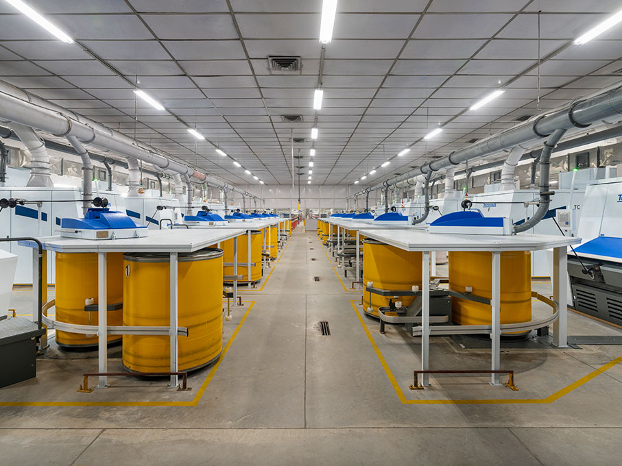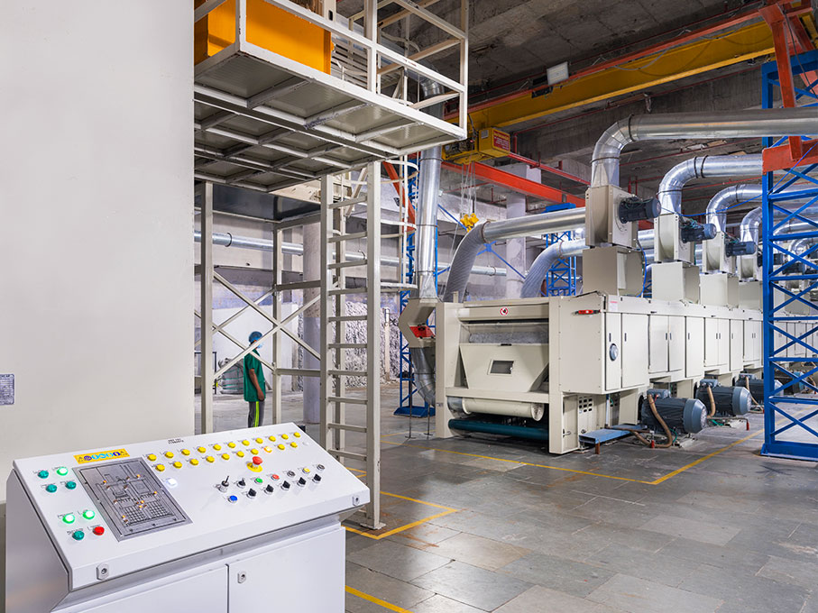 Las instalaciones de fabricación de textiles reciclados de Usha Yarn se extienden a lo largo de un campus de 10 hectáreas en Derbassi. Nuestras plantas de producción están equipadas con las máquinas de hilado más modernas de Rieter, Truetzschler, Oerlikon y Schlafhorst, utilizando una tecnología avanzada de reciclaje textil